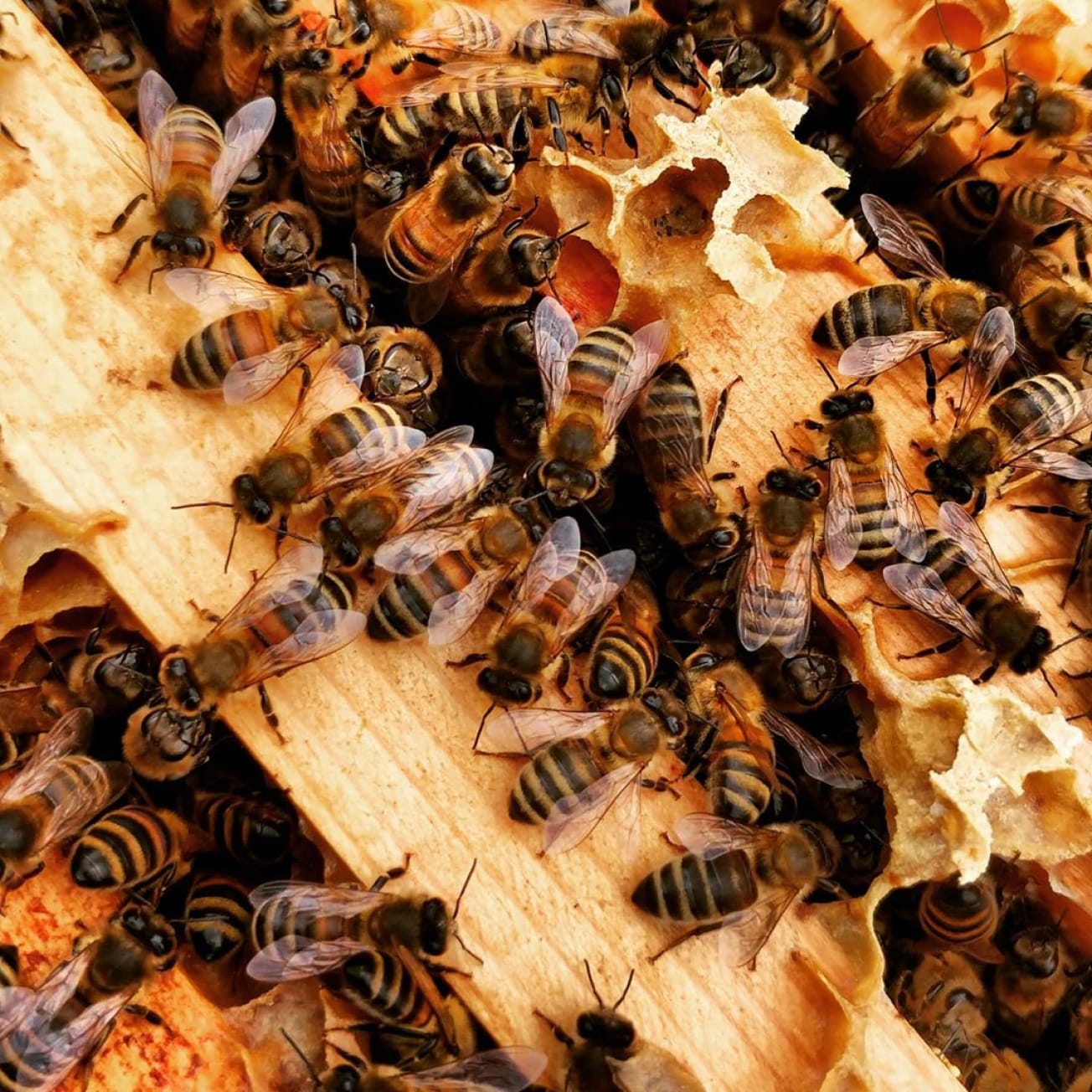 Busy bees in their hive